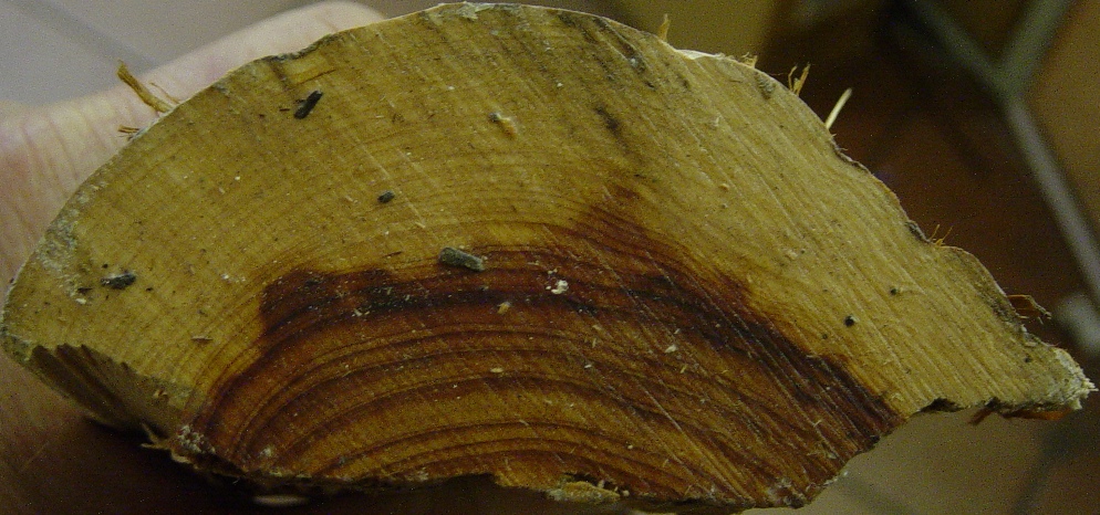 Das Holz ist noch nass. Auch die Rinde hat noch grüne Elemente.
