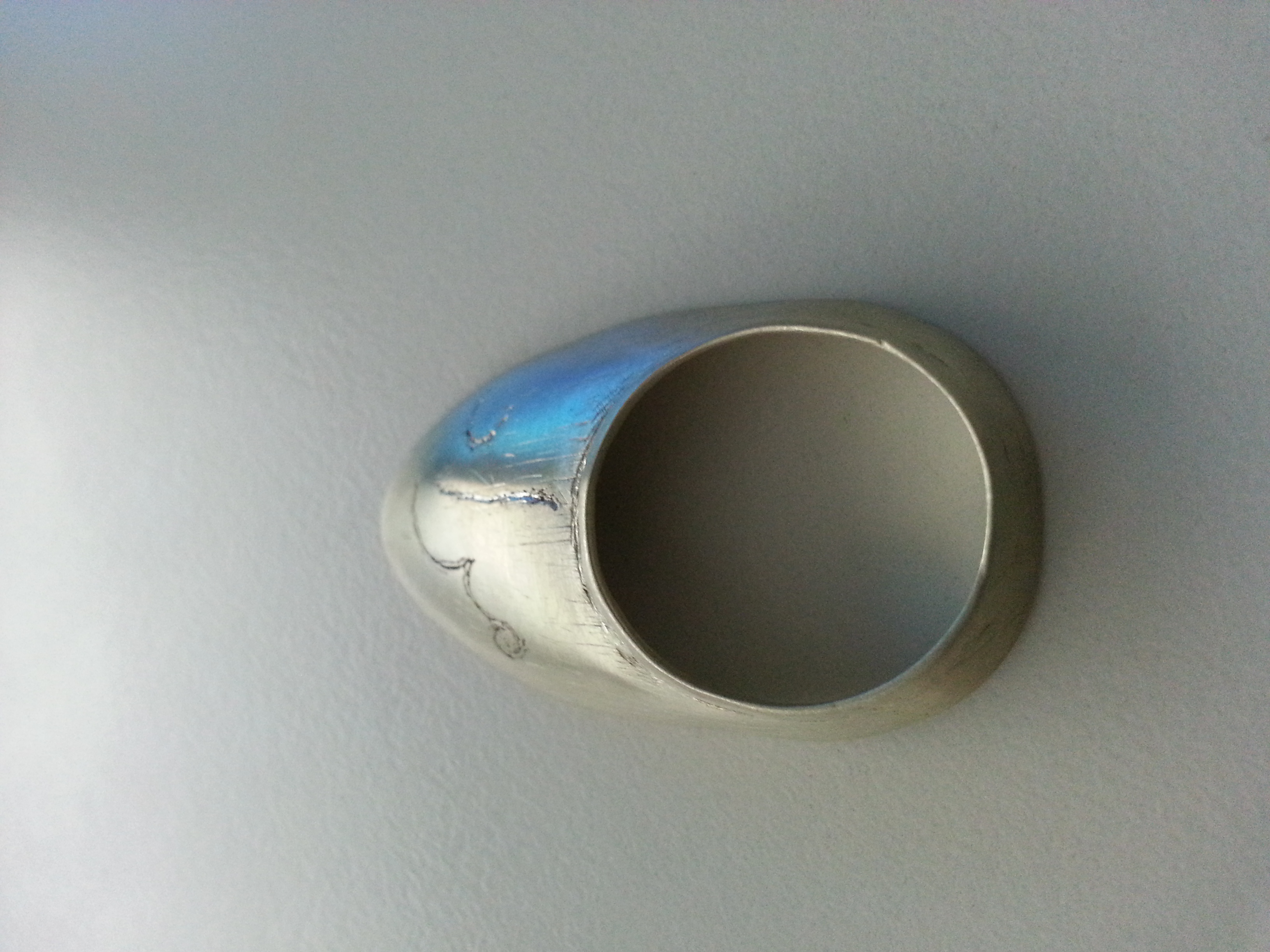 Das Loch im Ring war am Anfang rund wurde dann aber nach der Anpassung an den Daumen oval (Innenmaß 23mm x 20mm)