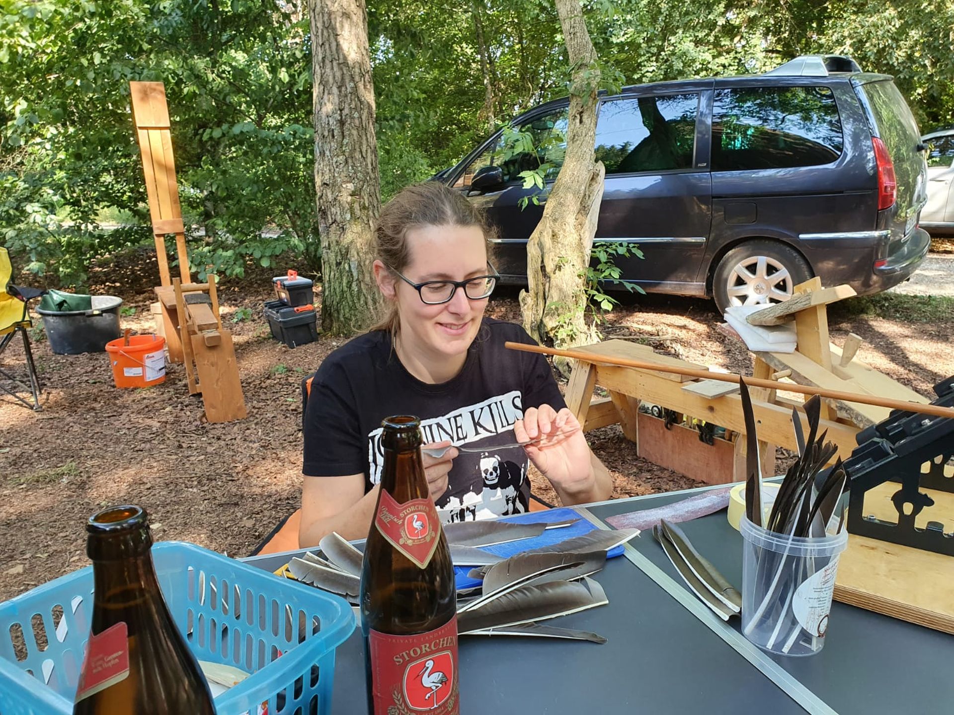 Ich weiß nun warum meine Assyrer Pfeile so bescheiden geflogen sind. Ich habe nochmals nach gerechnet und ich die Spitzen mit einem falschen Gewicht angegeben, sodass meine Pfeile zu weich sind. Ich brauche 110-115# Spine(der Dynamische Spine liegt über 123#) und ich habe 95-100# Spine. Das konnte man beim Treffen auch am Pfeilflug sehen. Wie ich die gebaut und geschossen habe, hatte ich den Bogen nicht in Vollauszug geschossen und auf kurzer Distanz war alles in Ordnung. Jetzt mit Vollauszug brauche ich härtere Schäfte und ich glaube nicht, dass meine Esche das bringt. Ich hoffe ich bekomme Bambusschäfte mit dem Spine, ist aber schwierig. Ich probiere auch mal andere Holzsorten durch, aber die Rohschäfte dürfen nicht schwerer wie 43gramm werden. Das wird nicht einfach