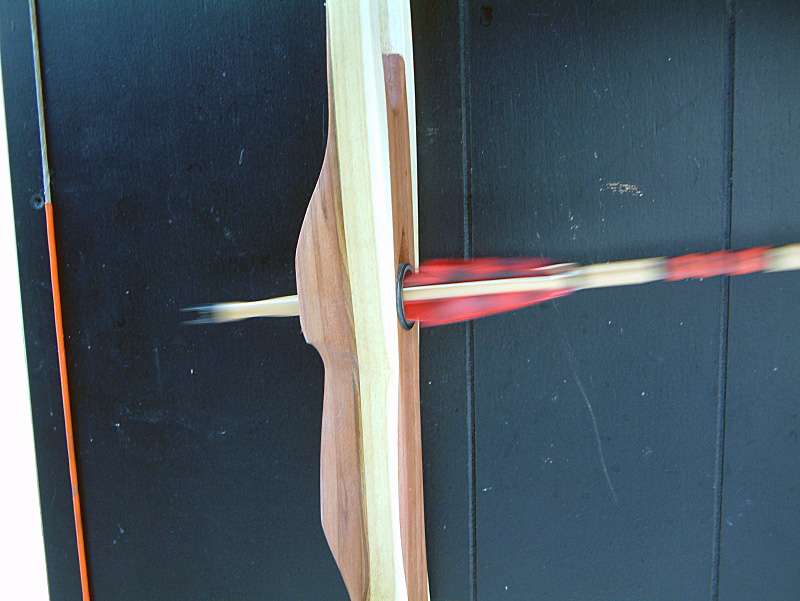 @mbf: Ja, ich hatte zuerst ein Centershot-Loch, da war es schwierig. Jetzt mit dem Spalt geht es ganz gut, wenn man die Pfeile etwas steifer macht, sodass sie nicht so stark schlängeln. Sie müssen ja nicht um den Griff herum, sondern sollten relativ gerade fliegen. Sie drücken sich dann an den rechten Zwillingsarm innen an wie an die Wand vom Schussfenster.