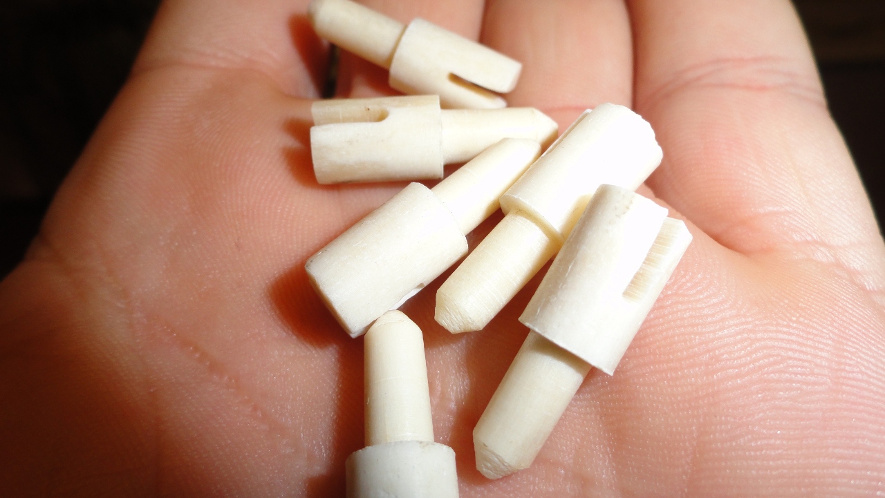 Auf der Band- oder Kreissäge eckige Hornstäbe sägen und die dann rund schleifen oder feilen, geht auch mit der Bohrmaschine.
