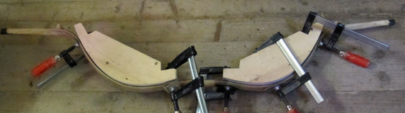 Nachdem alles recht gut durchgetrocknet ist, habe ich auf die Schnelle ein paar Tepliks gebaut und den Bogen in die gewünschte Biegung 24 Stunden lang gezwängt.