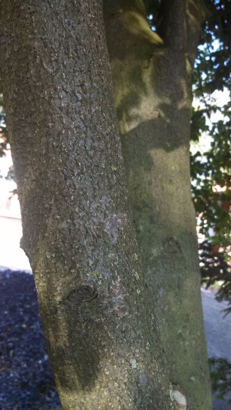 Die Rinde sieht üüüberhaupt nicht nach Traubenkirsche aus. Heißt nicht die Traubenkirsche auch Traubenkirsche, weil Blüten und Früchte in Dolden/Trauben angeordnet sind? Kann ich hier jetzt so nicht erkennen...