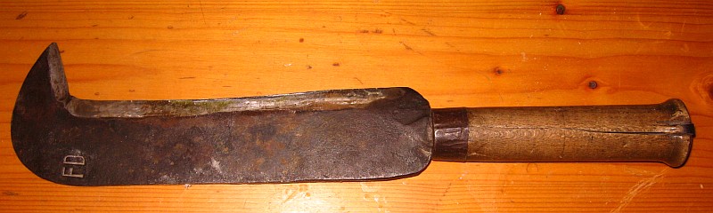 @ Palmstroem: So'n Teil kenne ich als Hippe oder Gertel, auf Englisch heisst es "Billhook" (=Schnabelhaken). Aus irgendeinem Grund sieht man es manchmal als "Schweizer Gertel" bezeichnet. Mein Vater hatte so eins zum Hecken schneiden, ich frag mich, wo es hingekommen ist. Kann ich mir gut vorstellen, dass man damit Spaene zum Fliegen bringt...