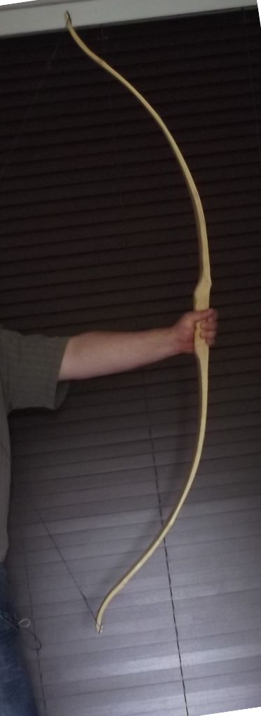 die Enden werden noch ein bißchen geflippt...gemäß dem Plan ;) Vielleicht auch Recurves aber dazu hab ich mich noch nicht durchgerungen, gespannt ist der ca 180 cm Nock to Nock.