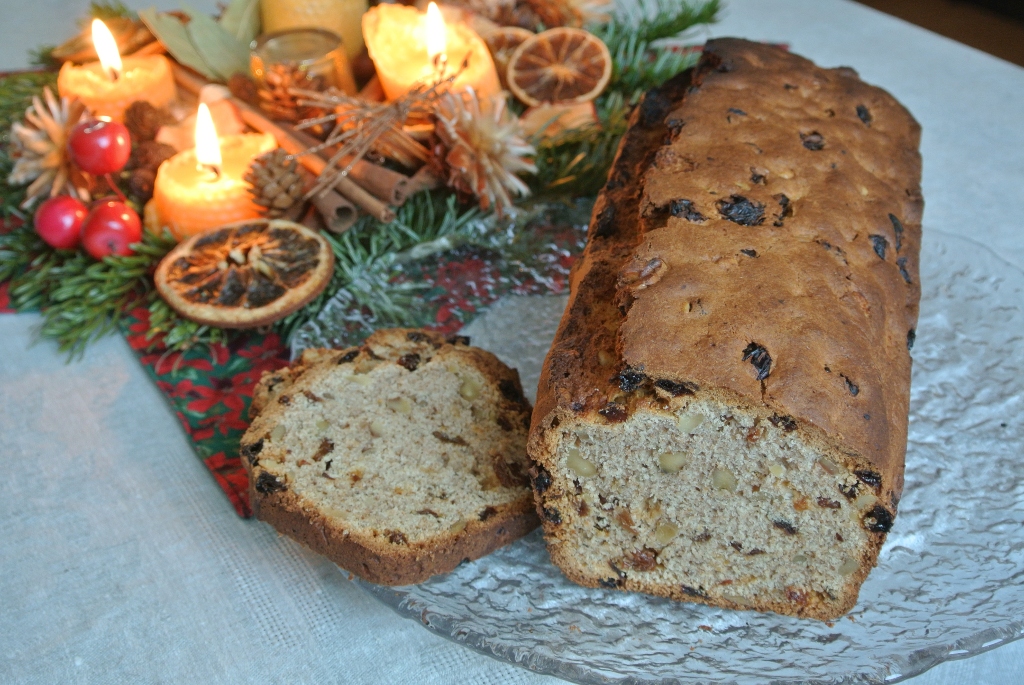 200 gr Walnüsse und 200 gr Rosinen untermischen und in gefetteter Backform bei 200 ° C 1 Stunde backen.