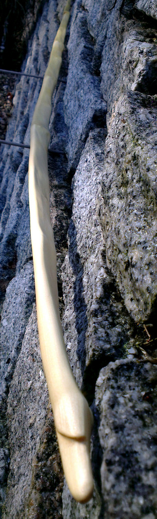 Obwohl ich sehr langsam vorgegangen bin, um mir keine Risse einzufangen, habe ich das Holz nicht genug daran gehindert, sich zu verwinden. Das hat ordentlich Länge gekostet und, weil ich den Griffbereich schon ausgenommen hatte, auch Breite. Ich konnte die Tips nicht so verjüngen, wie ich das gerne gemacht hätte, weil die WA in Kombination leichter Drehwuchs/Verzug zum Wegdrehen neigen.