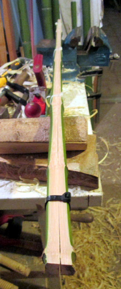 Ein Bhutanbogen mit der "guten" festen Rückenschicht am Bauch geht auch oft in die Hose. Die Fasern innen sind einfach Mist, egal , was die Bhutanesen damit anstellen. Wahrscheinlich sind einige Bambusarten dafür geeignet, andere nicht- Auch das bleibt spannend...
