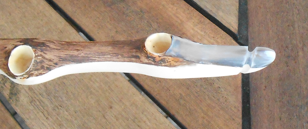 ).Danach habe ich alle kleinen und größeren Trocknungsrisse mit Epoxy verföhn. Bis morgen oder übermorgen hat er jetzt erst einmal Ruhe. Ich hab mal nachgezählt, ich musste insgesamt 28 Stellen (Astansätze, Dornansätze und Risse) verföhnen. Übrigens hat der Weißdorn 22 Ast- oder Dornansätze.