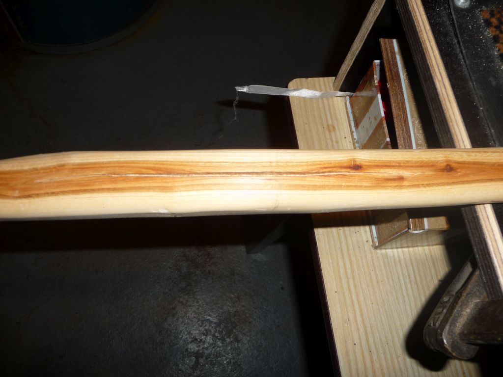 Das Restsück,dass in der Garage bei minus Temperaturen gelagert war , hat es sozusagen zerrissen. Da bin ich ich froh, dass meine Schlehe überlebt hat. Nun danach habe ich angfangen zu Tillern. Leider habe ich mir über einen kleinen Ast (hat es zerbrösselt) eine Schwachstelle eingefangen, die ausgleichen musste. Anfänglich war ein Zuggewicht von 50# gedacht gewesen. Da ich am großen Ast zuviel Material abgetragen habe, hatte ich mich entschiedennur noch ü 40# anzustreben. Durch die Schwachstelle war auch dies nicht mehr zu halten. Ich liege nun 30 und 35# je nachdem wie weit ich den Bogen ausziehe.(25" / 27").