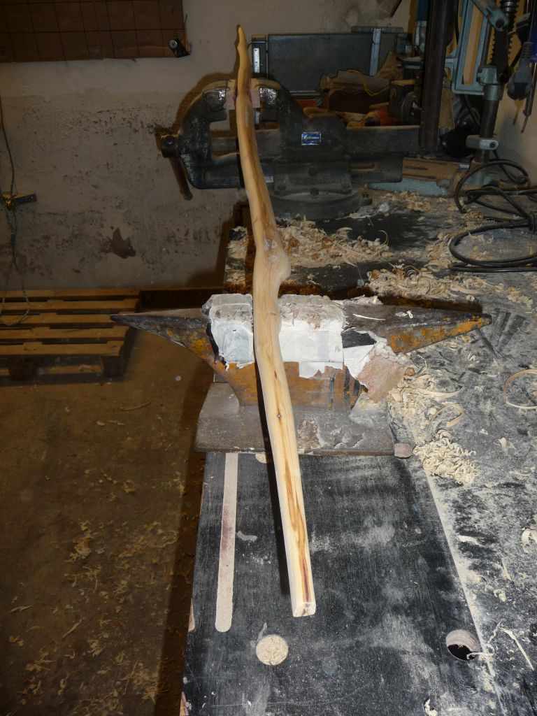 So nachdem der Schlehen Stave kein Gewicht mehr veloren hat, konnte ich die endgültige Bogenform heraus arbeiten.