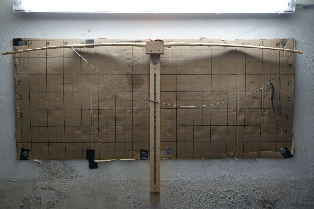 Das Tillern war nicht ganz einfach, da ich den großen Ast( links oberer Wurfarm) steif lassen musste und direkt dahinter war eine deflexe Stelle. Auf der rechten Seite(unterer Wurfarm) war direkt hinter dem Griff seitlich ein Ast, auch diesen musste ich steifer lassen. Obendrauf kam noch der Drehwuchs auf beiden Seiten. Nun ja ich hoffe der Tiller passt, bzw bei dem 27" tiller bin ich mir nicht sicher ob ich ihn so lassen sollte.
