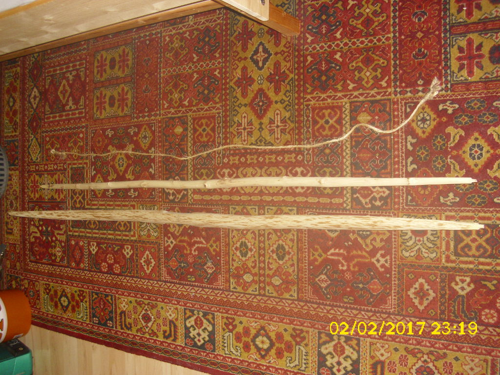 A slightly bowisher look (Denglish): Und für mich die Überraschung, der Hartriegel, null getillert, einfach nach Gusto zugeschnitten, ein bißchen larifari abgezogen und Stiftnocken dran. Bog sich halt schon ganz ok. Also "Make or Break" auf Standhöhe gebracht, Wow.. kein Theater, biegt sich nicht wirklich daneben, Zug knapp unter 4kg/10cm, weiter hab ich ihn nicht gezogen, in der Mitte sieht er noch etwas arg steif aus.