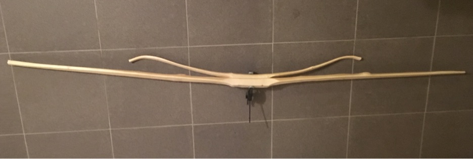 Um die „Decurves“ anders zu nutzen, als sie quasi nur langzuziehen, bau ich den Bogen auch nicht als Penobscot, sondern als Micmac. Bei denen werden die Kabel über die Vorbogenenden geführt und griffnah eingehängt. Damit dienen die nach unten gebogenen Enden als Hypomochlion für die Kabel und hebeln die Kabel hoch. Mal sehen, ob das taugt. Ich seh‘s, wie gesagt, als Experiment..