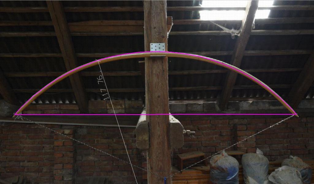 Jetzt kann man dem entgegenwirken, indem man die Griffsektion weniger mitbiegen läßt, was i.d.F. zwar immernoch einen Bogen ergibt der sich über den vollen Kreisbogen biegt - aber eben nicht mehr so, daß das Kreissegment dann einen Kreis mit gleichem Radius über 360° beschreibt, würde man diesen vollenden, sondern eine Ellipse -- und das ist der Fall, sobald die Griffsektion weniger biegt, da es sich unmittelbar auf den griffnahen Bereich der Wurfarme auswirkt die sich dann flacher biegen als es für einen Kreis mit gleichem Radius nötig wäre. Sicher gibt es da graduelle Unterschiede und es ließen sich rein theoretisch Ellipsen erreichen, deren Radien dem eines Vollkreises ziemlich nahe kämen, das ist in der Praxis aber wenig sinnvoll, deswegen macht das auch keiner (jedenfalls nicht absichtlich, bzw. bewußt) -- und das ist auch bei Rotzeklotz' Bogen nicht der Fall, obwohl er die Schußeigenschaften da noch ein Stück weit hätte optimieren können. Der Bogen biegt im Griff weniger mit als ein voll und gleichmäßig durchbiegender Bogen und bildet so letztendlich eine Ellipse statt eines Kreises.