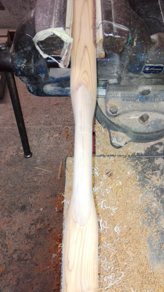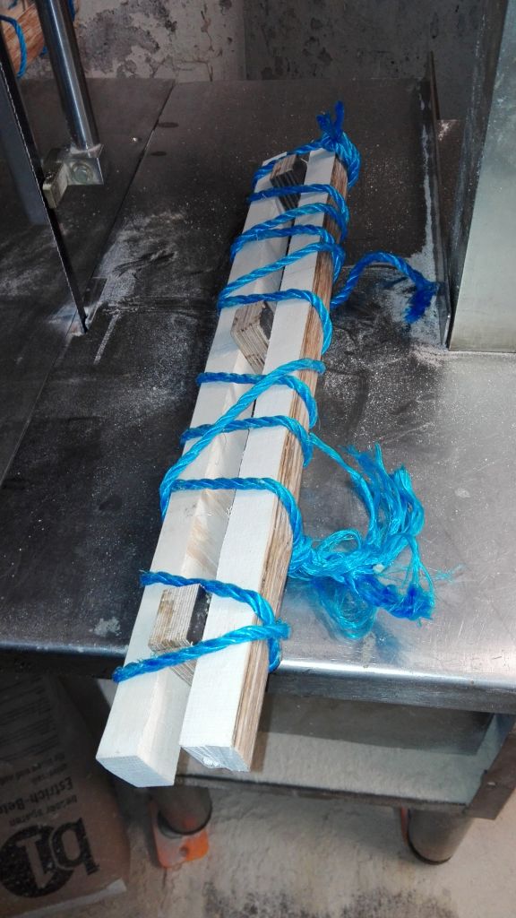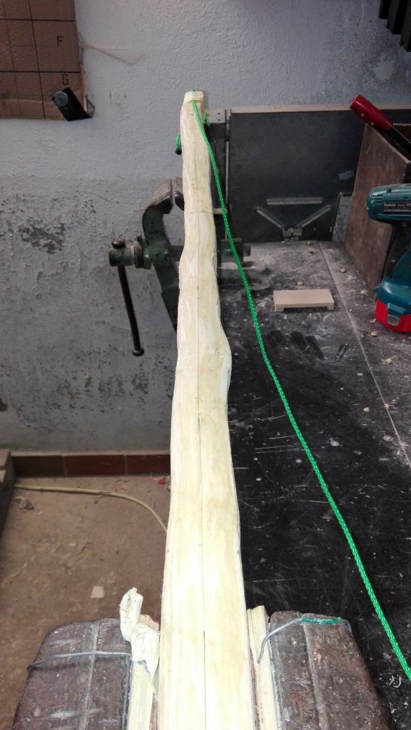 Heute habe ich der Kiefer den Rücken begradigt und einen leichten Taper verpasst. Danach die Maße von der Kiefer auf den Hasel übertragen und mit der Bandsäge ausgeschnitten. Jetzt alles vom Hasel in der Dicke entfernt was nicht gebraucht wird und einen Taper verpasst, also leicht gebogen und getillert. Danach den Bauch des Hasel Plan geschliffen. Jetzt alles zusammen gebunden. Nun darf er weiter trocknen. Ich bin mal gespannt ob der Plan B mit der Kiefer funktioniert. Die Nadeln habe ich mit Überstand heraus geschnitten und ebenfalls zusammen gebunden. Ich hoffe ich bekomme alles rechtzeitig trocken....