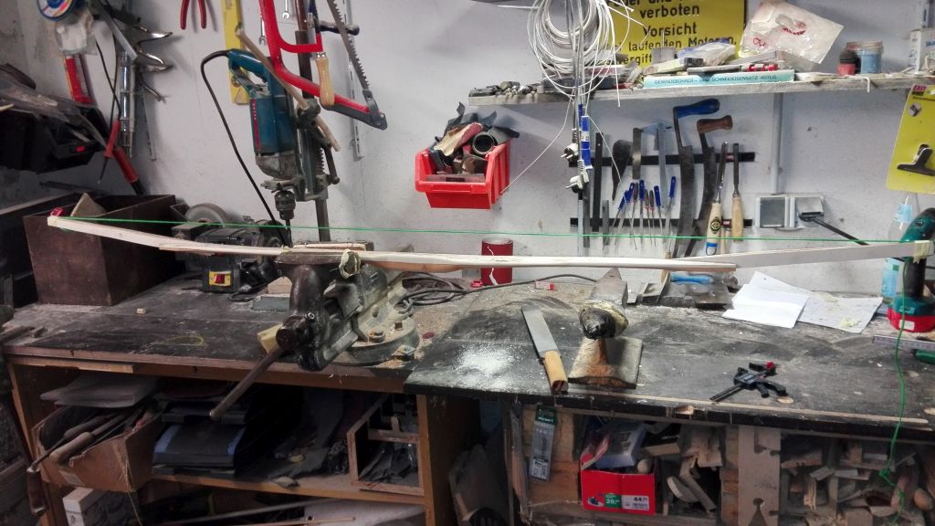 Bevor Fragen kommen... Der Bogen ganz links im Bild ist ein Ulme Bogen mit 85# bei 30'' und stellt im Moment mein Trainingsbogen für den 90# Osmanen dar. Er ist noch fertig und wird nach dem Sap irgendwann präsentiert.