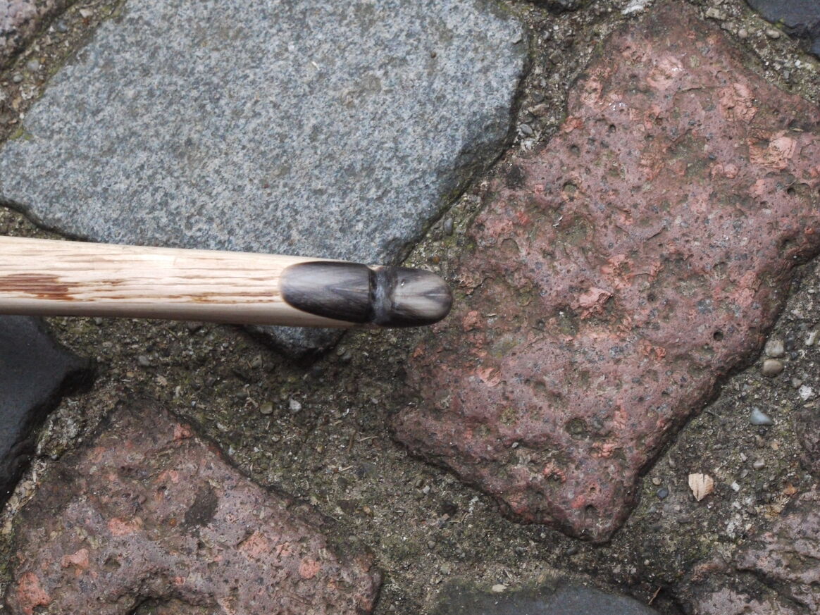 Der Fichsel stand jetzt fast 2 Jahre unbeachtet im Eck, wo lauter unbeendete und irgendwie missratene Boegen stehen. Vor ein paar Wochen hab ich da mal ein bissl aufgeraeumt und der Kerl war stangerlgrad. Keine Ahnung wieso. Ich hab ihn dann nochmal auf den Tillerstock aber er war eingentlich eh schon fertig. Ich hab ihn dann noch geschliffen und Hartoel und Wachs drauf.