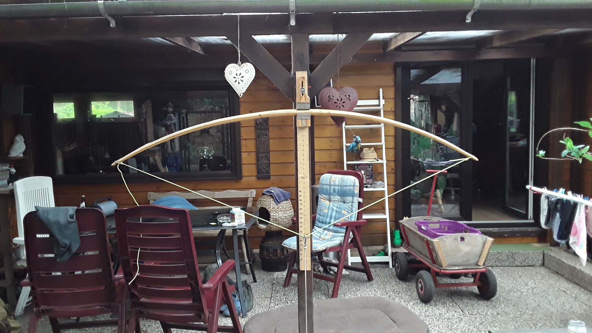 Mit dem dämpfen hat es gut geklappt, einmal noch und dann is die sehne wo sie hingehört ,wollte aber vorher noch den bogen auf Standhöhe bringen, also tillern .Der Bogen is 194 und soll mal um die 70 # haben,sieht doch fast schon gut aus ?würde mich über Tip's freuen .ld im voraus