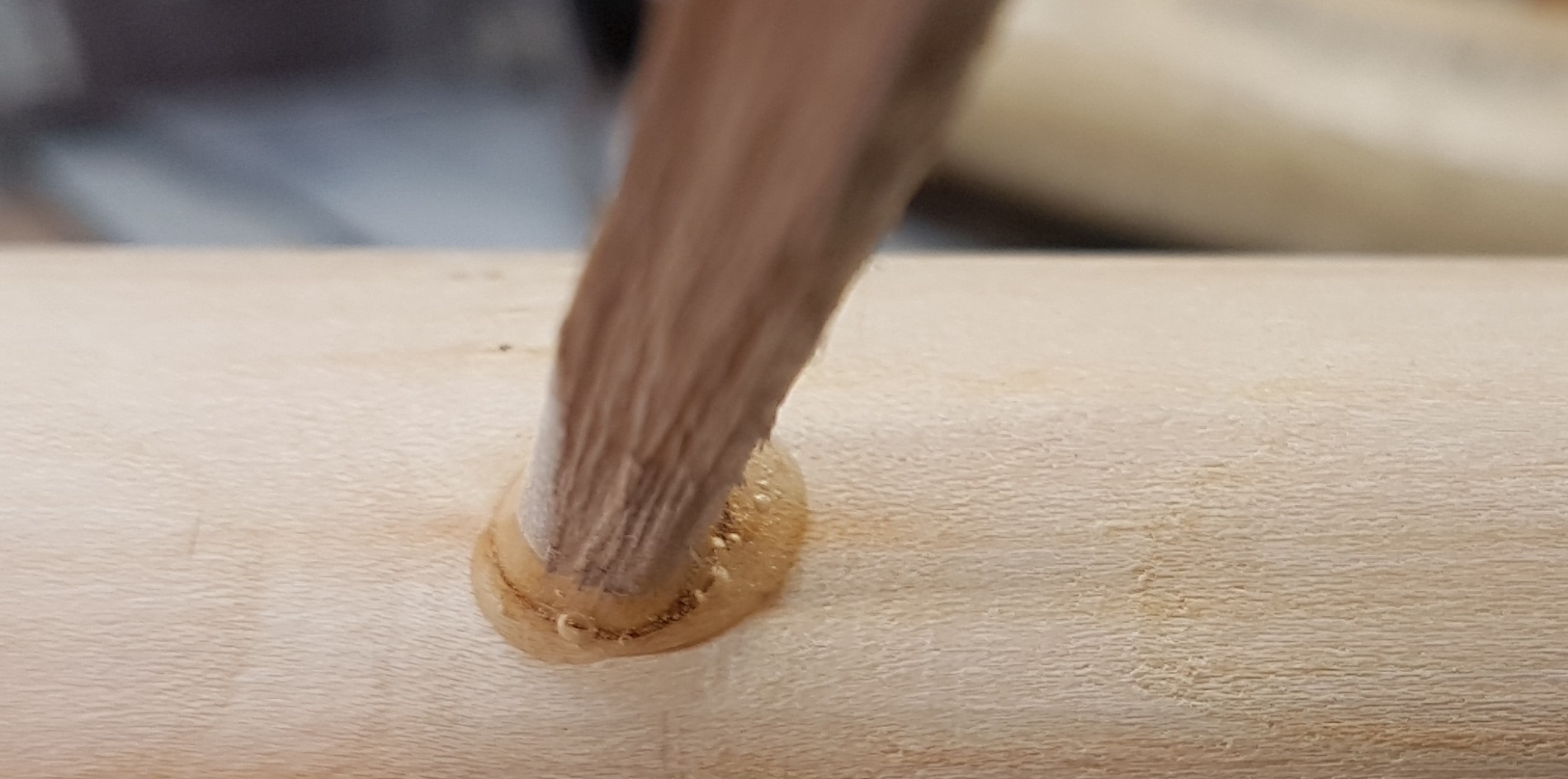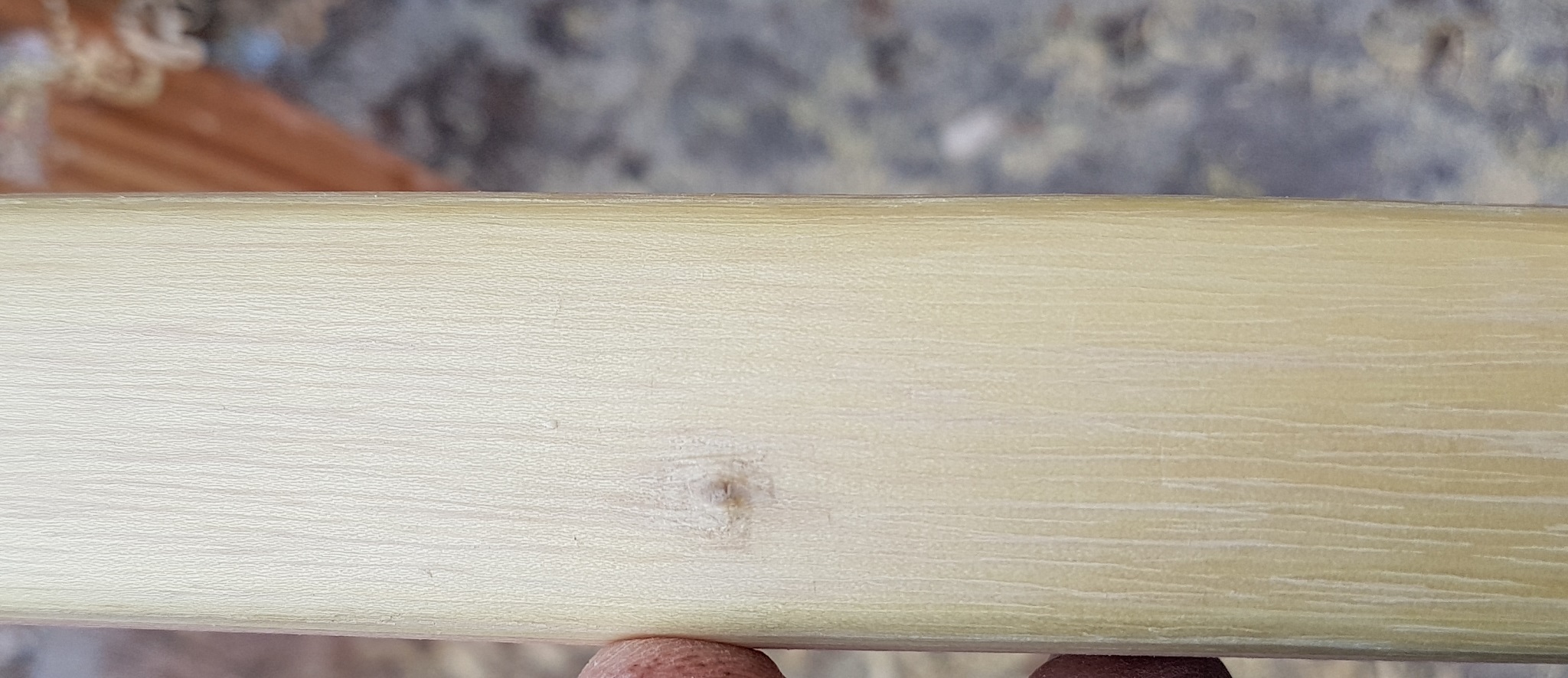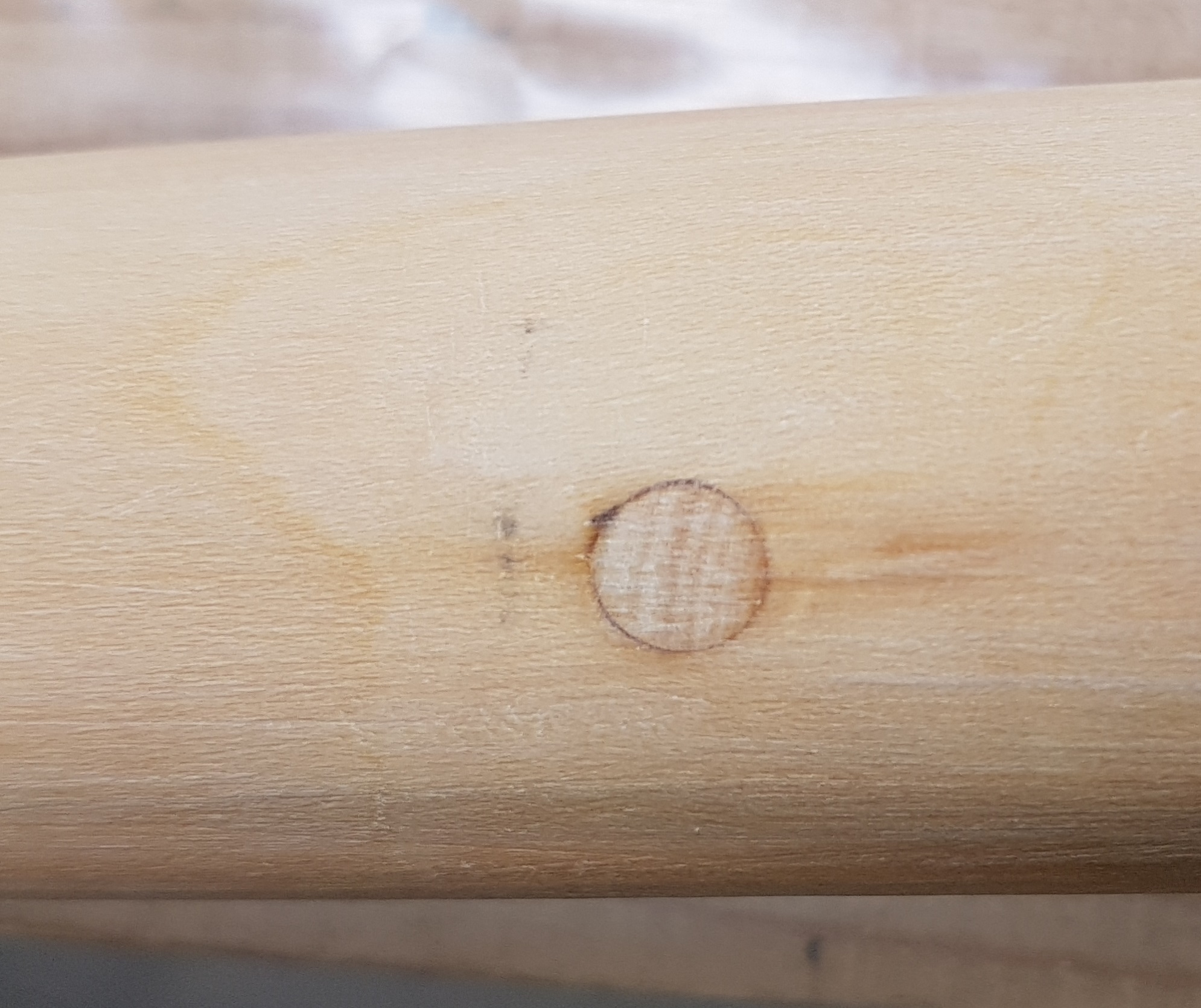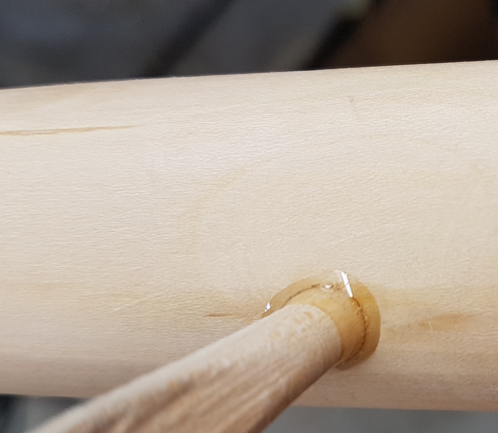 So langsam geht es gegen Ende: 2 Totäste habe ich ausgebohrt und Dübel aus nem Reststück mit UHU Schnellfest reingeklebt.