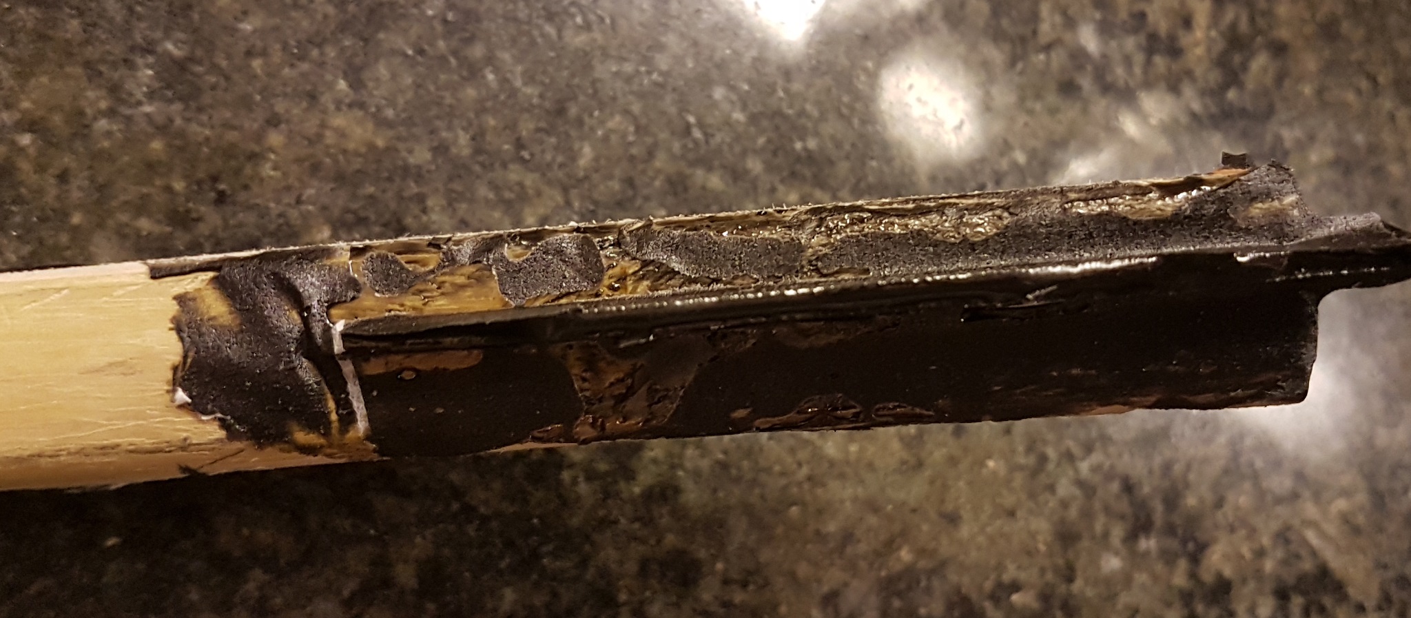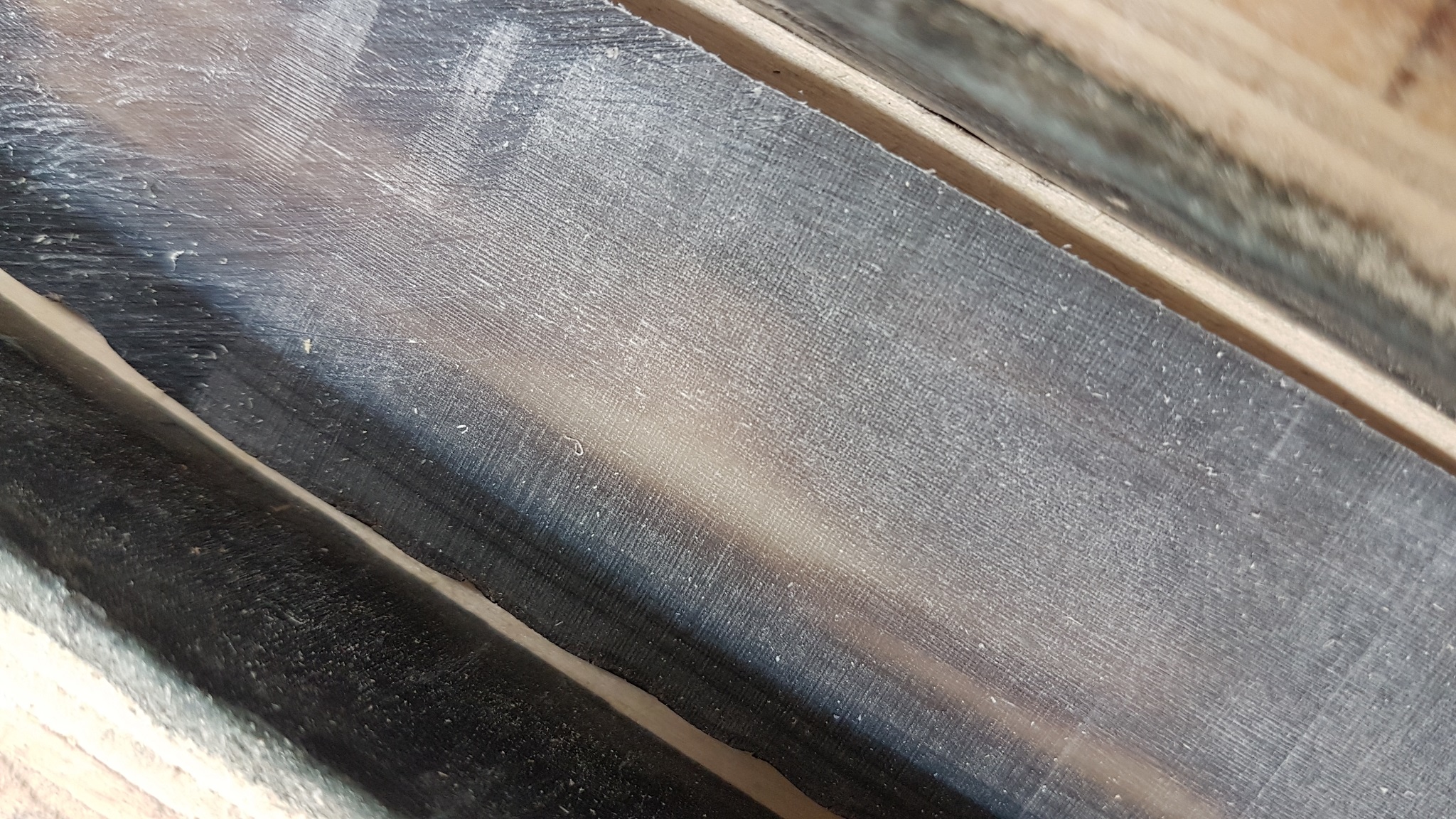 Hier die geklebten Hornstreifen, ca. 2 mm dick.