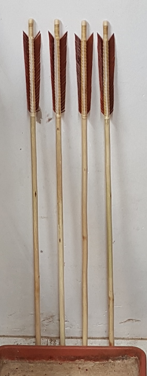 Die Pfeile sind auch fertig, nur noch eine Lage Wachs-Harz-Versiegelung muss drauf.
