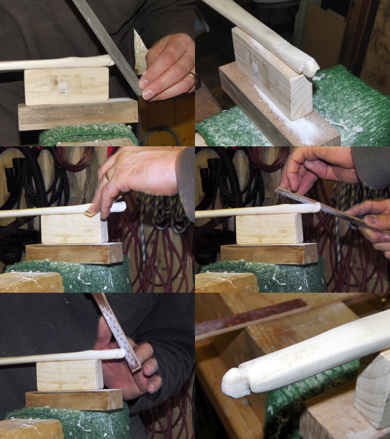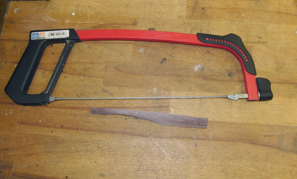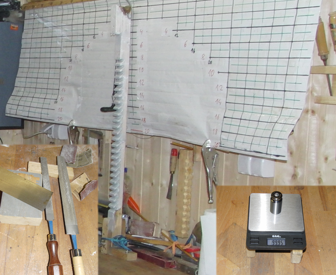 Mit Waage, Raspeln, Ziehlkinge, Schmirgel Körnungen 120 und 150 Tillerwand und dem nicht abgebildeten Schraubstock habe ich