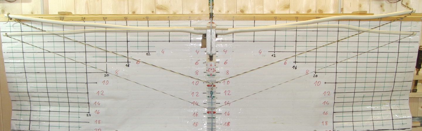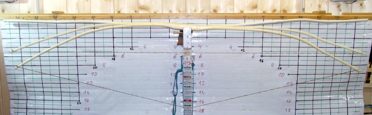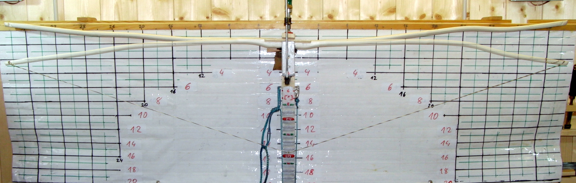 ) habe ich den Rohling wieder ohne Vorspannung an die Tillerwand gehängt und mein planmäßiges Zuggewicht von 40# angelegt.
