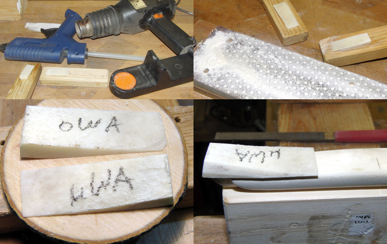 Zur Bearbeitung der Knochen ist zu sagen: Die einzigen Elektrowerkzeuge, die ich verwendet habe, sind Geräte zur Wärmeerzeugung. Wenn ich mir den Geruch der Säge- bzw. Schleifarbeiten jetzt durch Elektroantrieb potenziert vorstelle, müsste ich meine Werkstatt vermutlich abreissen und - nach Dekontamination von Ground Zero - neu bauen.