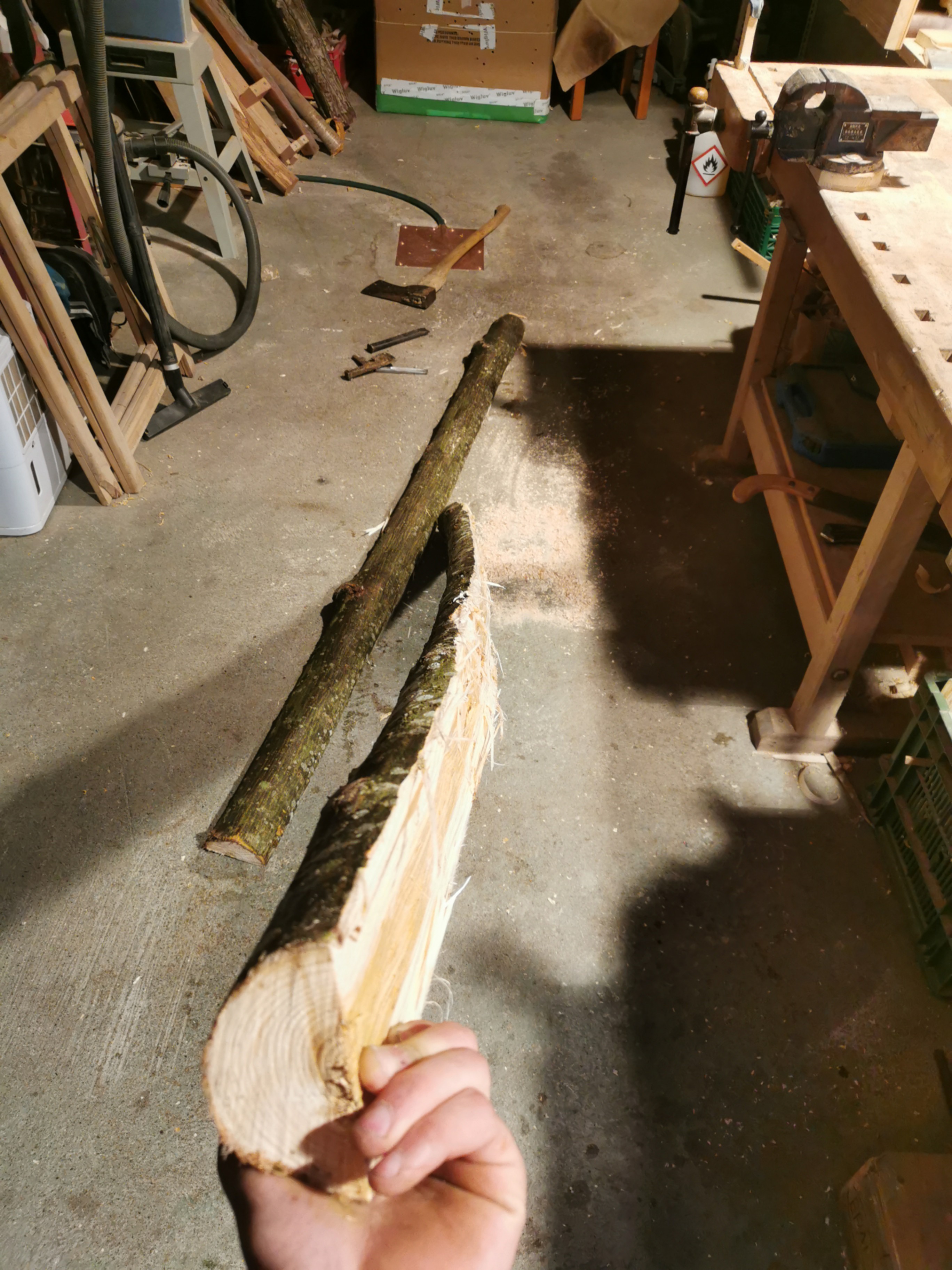 So nun habe ich 5h Holz gespalten gesägt und entrindet... für heute reichts. Es ist noch eine Robinie dazu gekommen, da warten 10 Staves, dass sie vom Splint befreit werden...