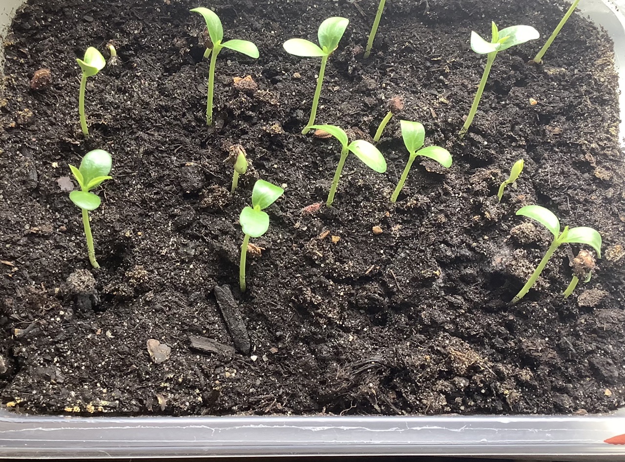 Es haben noch welche nachgekeimt. Ich habe die Erde noch mal aufgelockert, die war zu fest. Er gab noch mal acht Pflänzchen und jetzt noch mal ein einzelnes (nicht auf dem Bild) Insgesamt 24, eines ist leider schon wieder eingegangen.