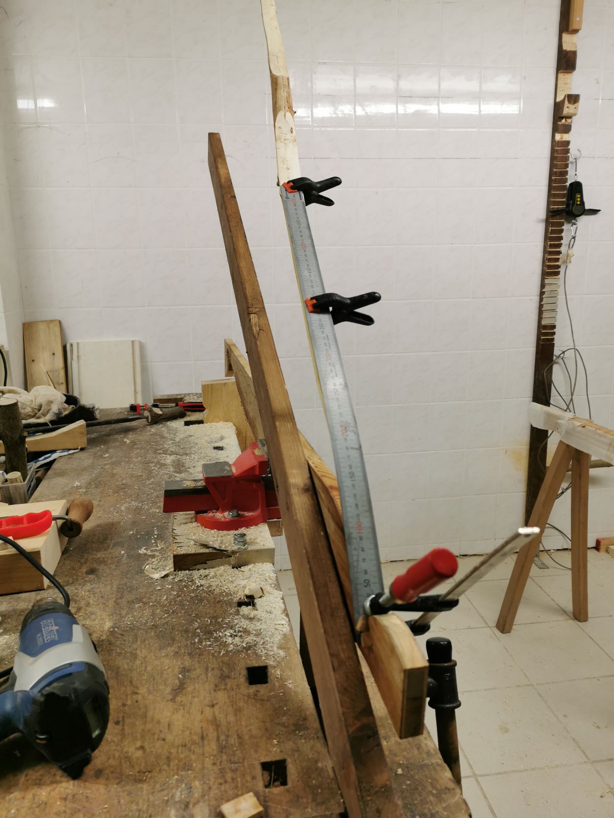 Ich habe sie ausgespannt und grob auf Breite und Dicke getapert. Dabei viel mir auf, dass ein Ende sich stark weggedreht hat und das andere sich leicht verdreht hat.