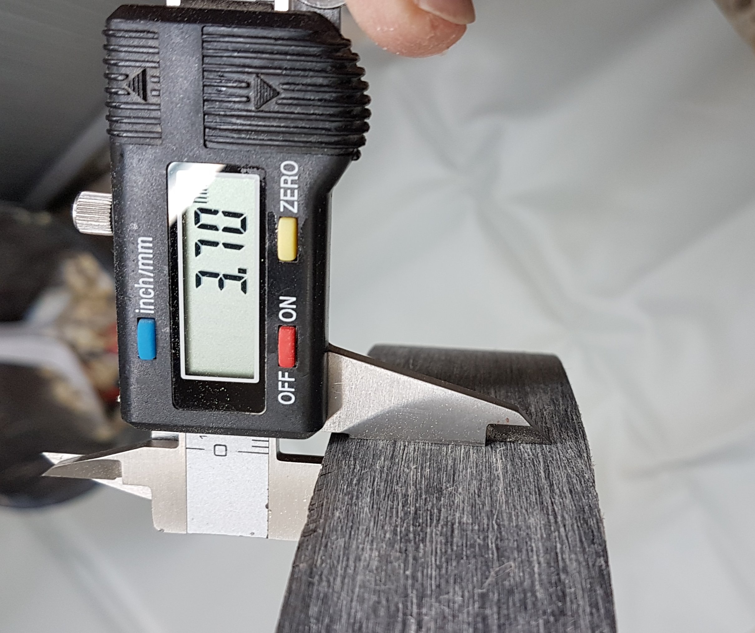 Also vorgestern die Hornstreifen mit der Bandsäge auf ca. 3,7 mm geschnitten, so dass es nach dem schleifen noch 3,5 mm übrig sind. Mehr Dicke haben die Streifen auch nicht mehr gebracht, aber das ist OK.