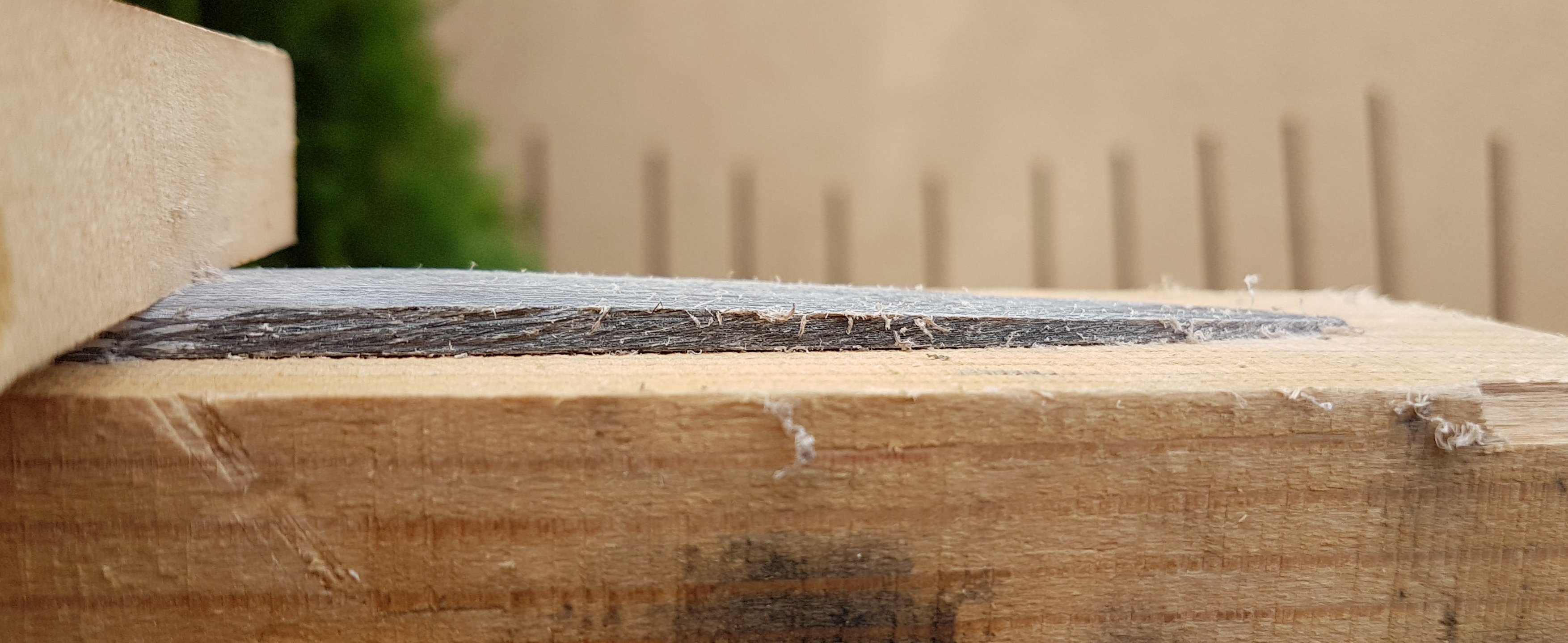 Bei diesem Reststreifen gab es noch das Problem, dass mir der Dickenschnitt misslungen war - ich hab die beiden Teile einfach zusammen geklebt und dann nochmal den Dickenschnitt gemacht