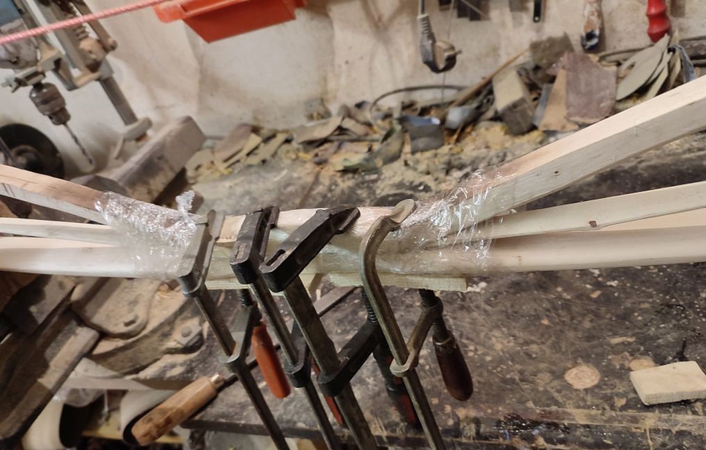 Jetzt wird der Innenbogen fertig gestellt und alles im Griff vereint. Mal sehen wie sich das auf den Tiller auswirkt und auf das Zuggewicht..