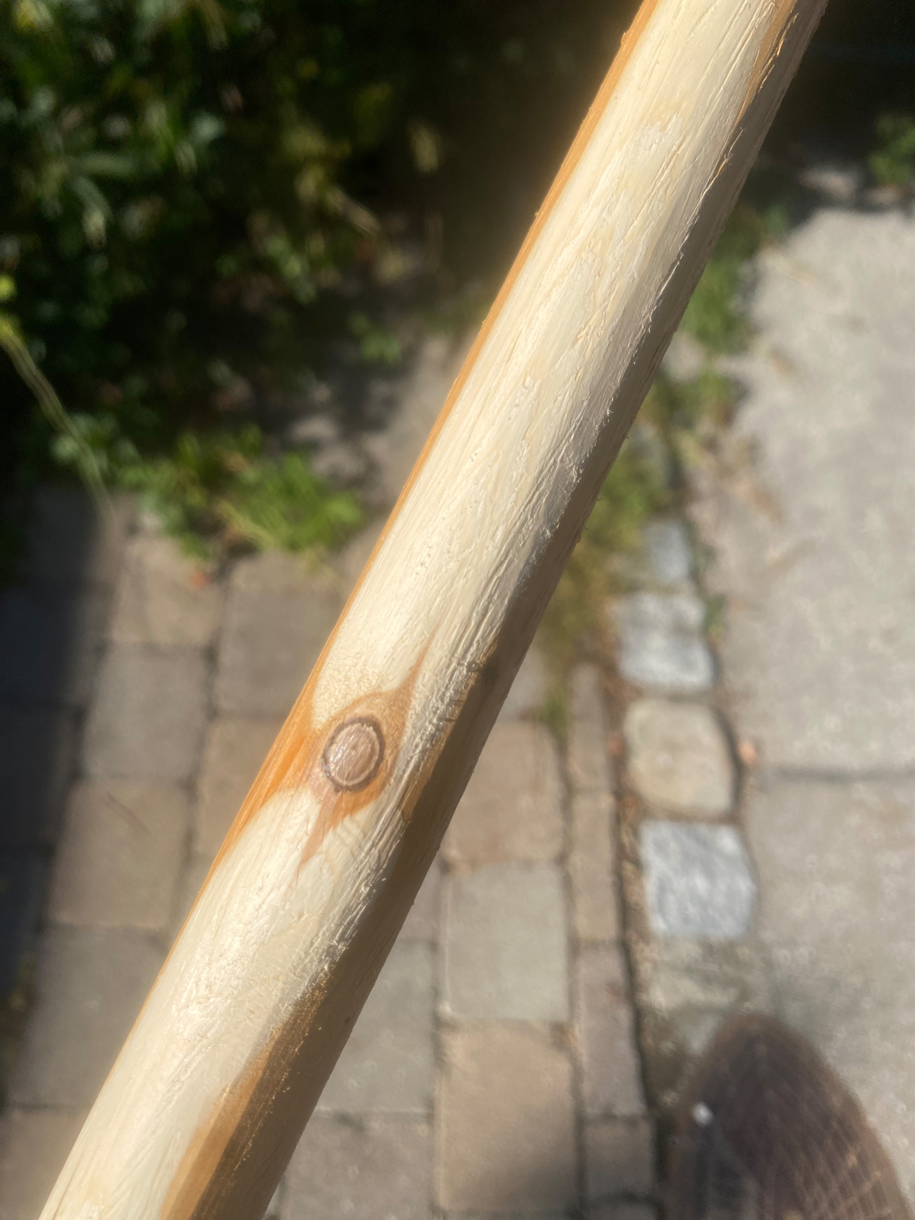 Weil da Splint auf den Bildern zu sehen ist: Wie gesagt - erster Versuch, kein besonders gutes Holz, nicht weiter schlimm, wenn er bricht. Die nächsten beiden baue ich komplett ohne Splint, der passende Stamm dafür ist vorhanden.