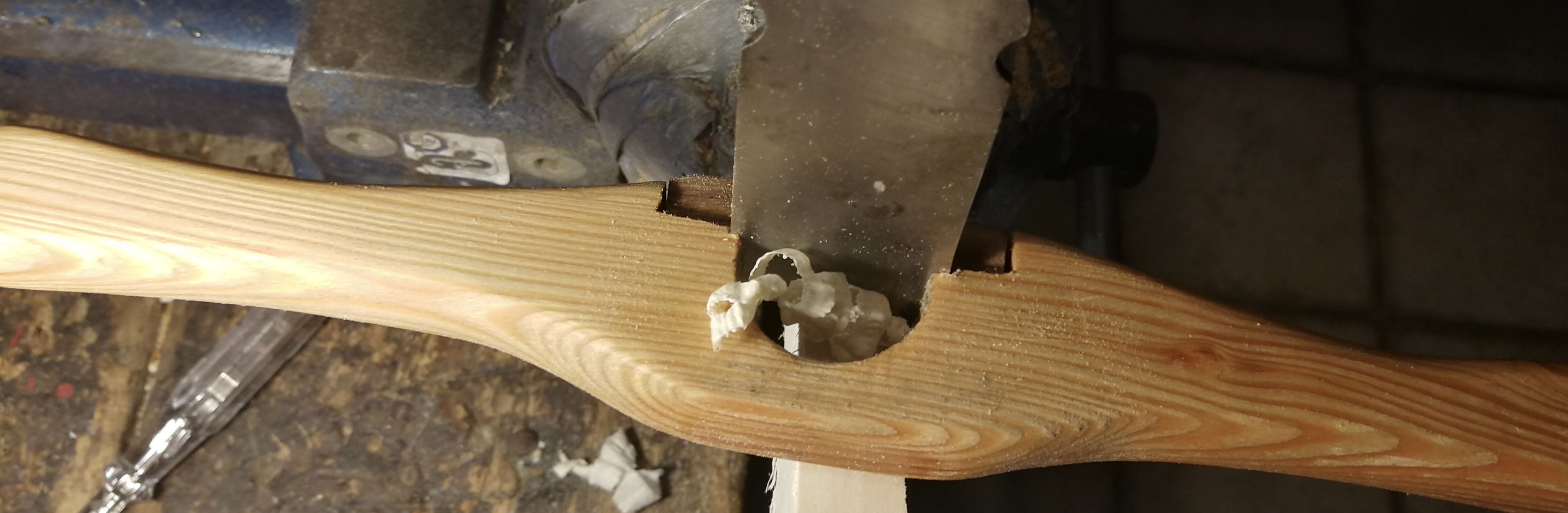 ...und der Bogen war mit Kirschrinde belegt, jetzt ist halt der Hobel mit Kirschrinde belegt