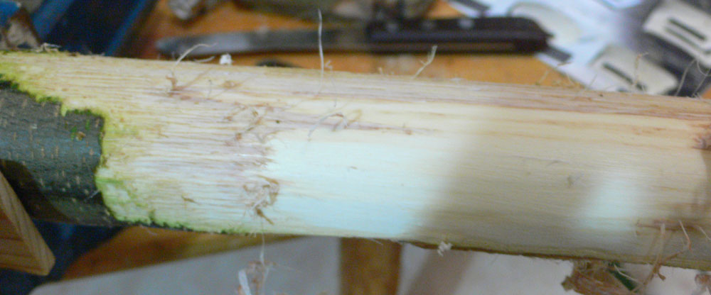 Problem im Griffbereich ist der Holler nicht sehr dick, das wird etwas kitzelig mit dem aufkleben des Griffstückes
