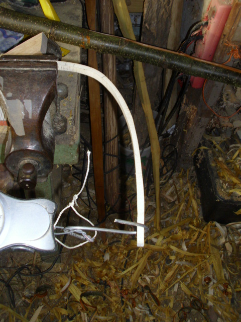 So mit dem Pfaffenhut gings heut weiter. Hätte nicht gedacht das das Holz sogar schneller trocknet als der Holunder Stave. Das Holz verliert zwar immer noch ein paar Gramm / Tag, doch ich habe angefangen die Form etwas weiter herauszuarbeiten.: Dicken und Taperverläufe angepasst, Bodentiller durchgeführt und den Bogen für eine Stunde auf Standhöhe gebracht. Jetzt gehts weiter auf der Heizung, rückseitig aufgespannt.