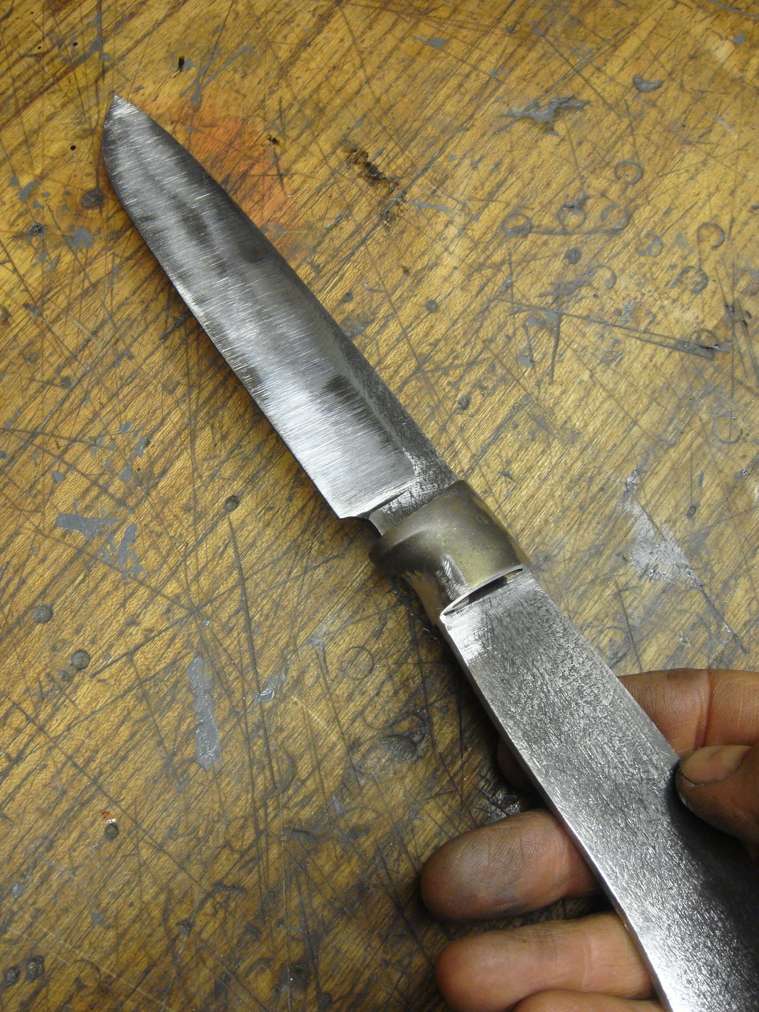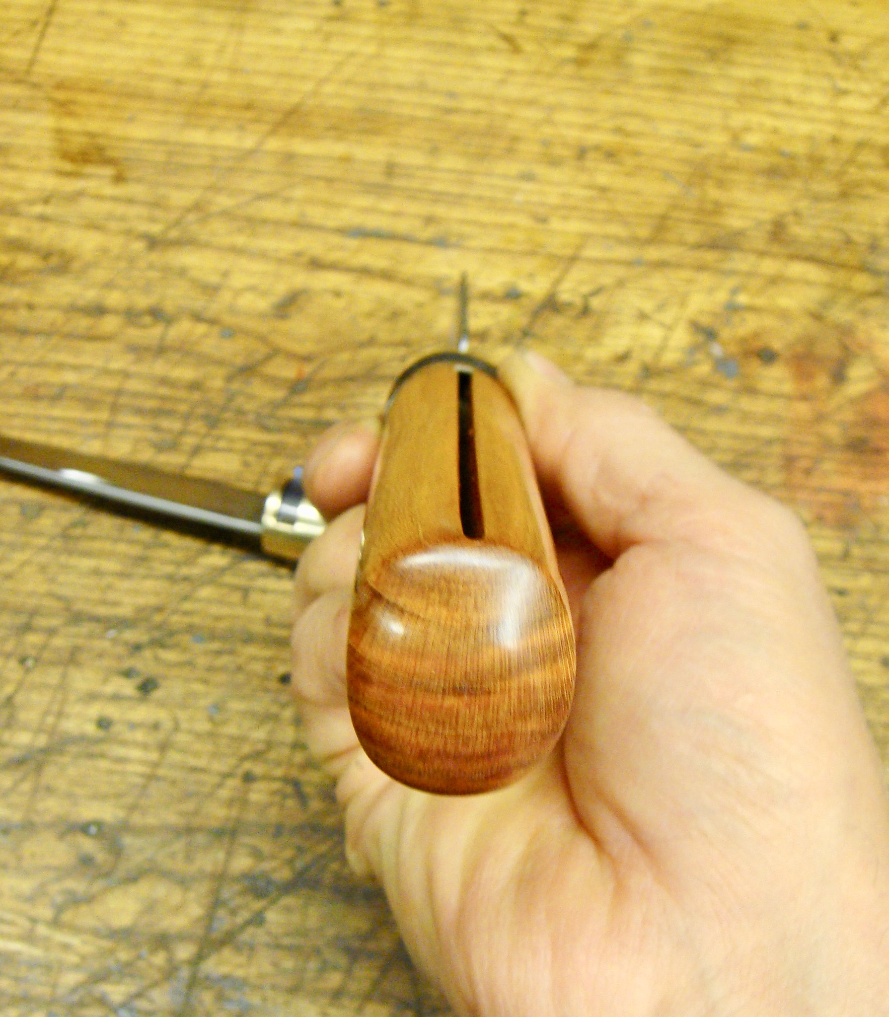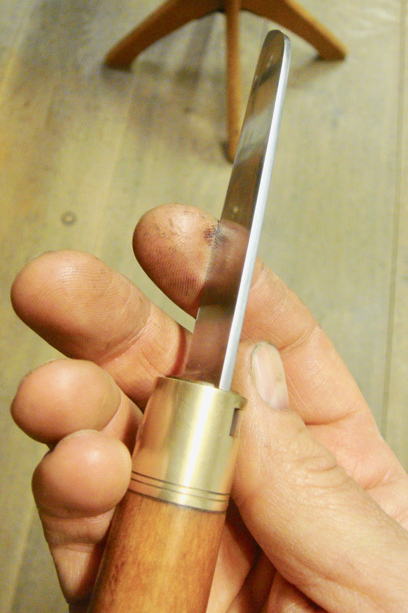 Das Messer hier hat eine Tülle und der Holzteil geht innen durch. Die Mehrheit meiner Messer ist so.