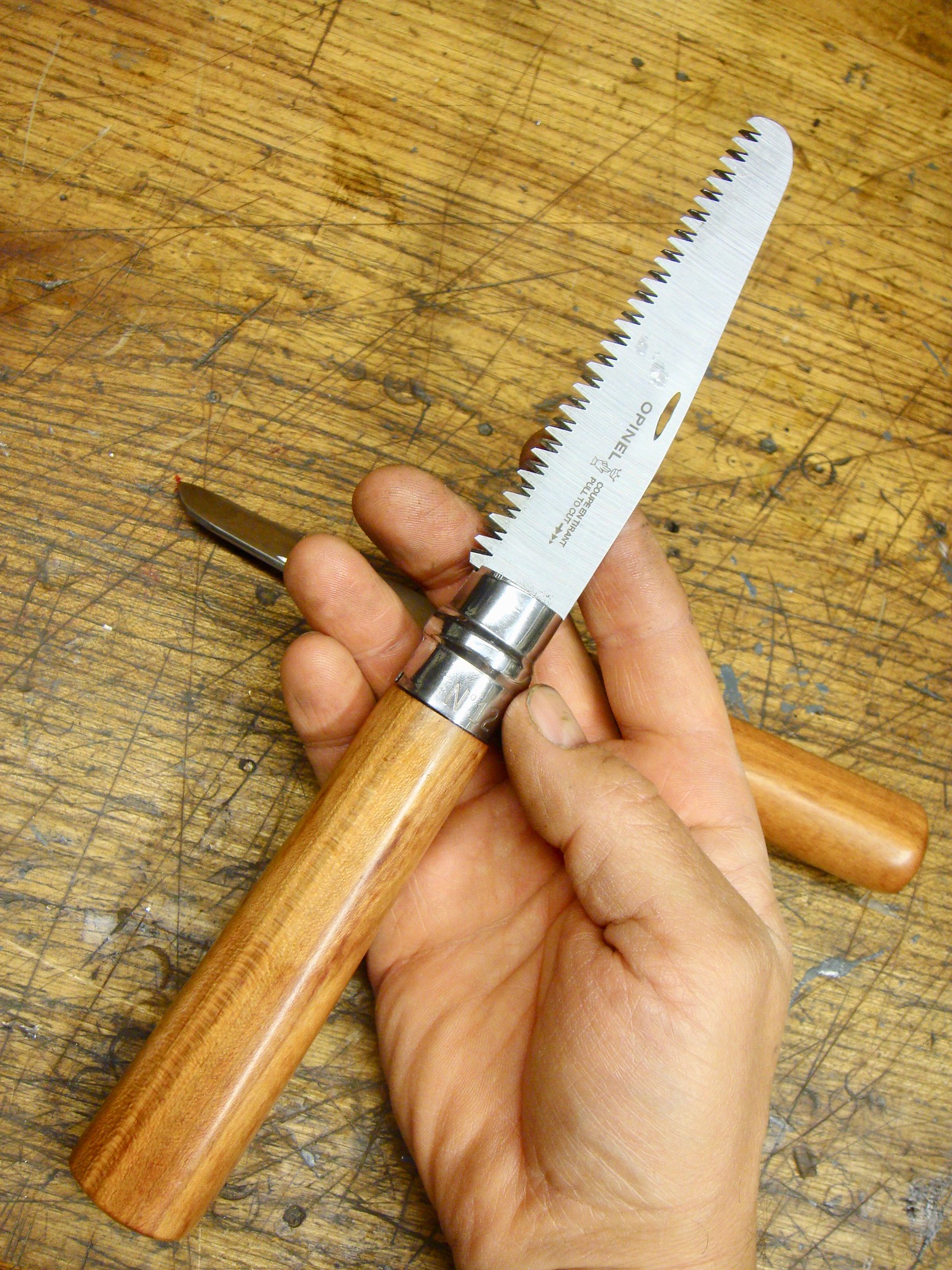 Hier ein Taschenmesser und passend dazu eine gepimpte Opinel Klappsäge.