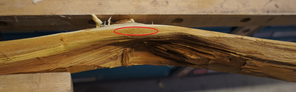 Vor allem an dieser Position? Im äusseren Wurfarmdrittel? Ist jetzt nicht so die allereinfachste Stelle find ich. Grossartig verschnitzen darf ich mich da nicht. Zumal das Tillern bei nem Ast eh schon immer mühsam ist. Nun ja, die andere Option wäre den Bogen daneben zu legen, da hätte ich auf Höhe Griffstück den hübschen kleinen Ast...