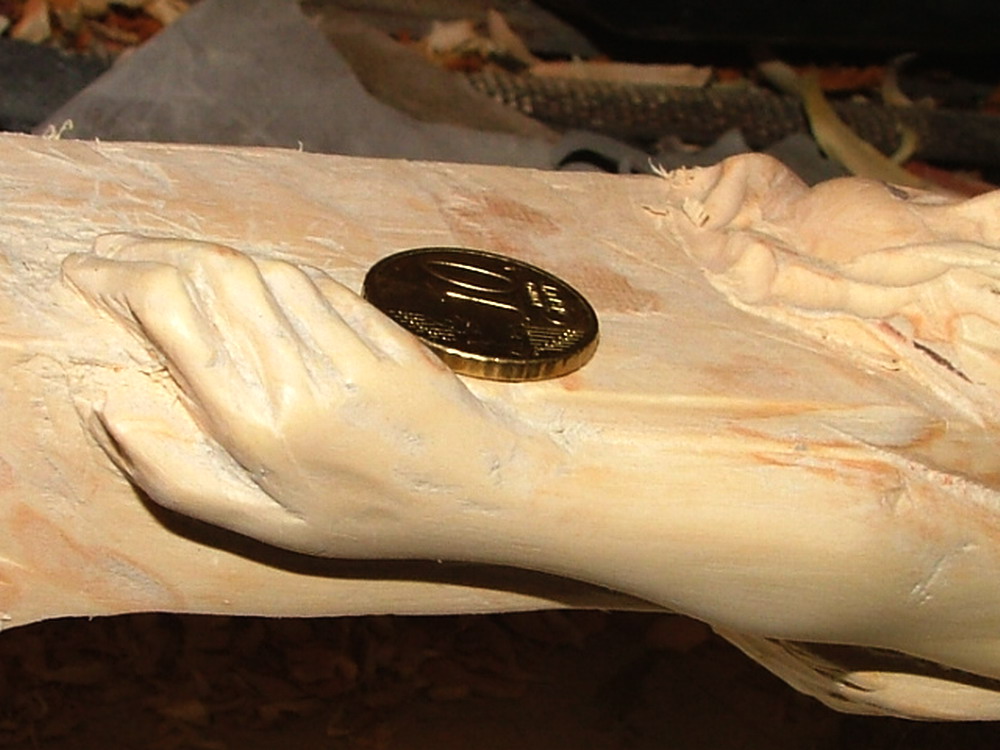 Erstmal weitergeraspelt und wieder mit dem Farbkratzer geglättet. Zwei blöde Stellen (fauliger Ast und Riss) sind dabei weggefallen.