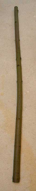 Da ein WA beim Spalten leicht rausgelaufen und daher recht dünn ist, habe ich erst einmal die volle Breite von jetzt 4,5cm auf ca. 3/4 der WAs gelassen, dann erst auf 1,5cm verjüngt. Den Griffbereich habe ich auch erst einmal breit gelassen und die WA ein wenig ausgedünnt. So lege ich das gute Stück zum Trocknen und als Notfall-Reserve zur Seite.