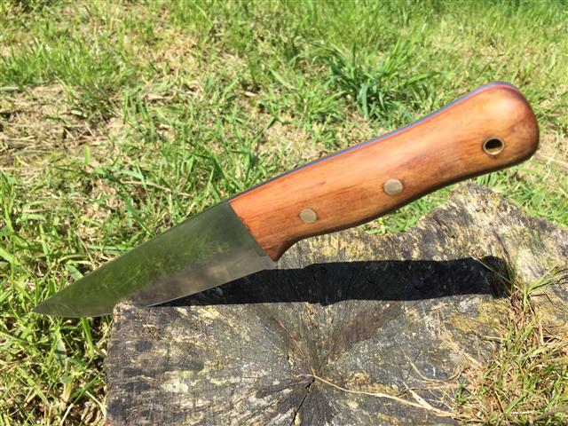 Bin eigentlich sehr zufrieden, hatte erst Sorge, das ich die Härte nicht erreicht habe beim Erhitzen mit dem Gasbrenner, aber scheint zu passen, lässt sich gut schärfen (zum Rasieren und Tomatenschneiden reicht es allemal