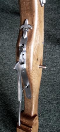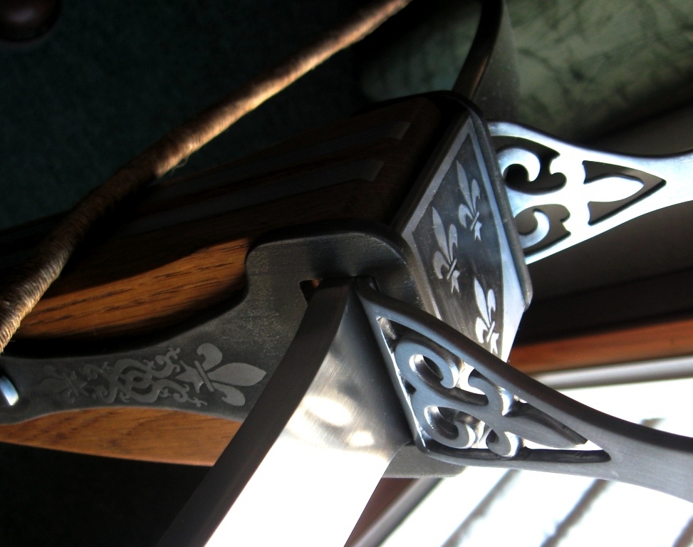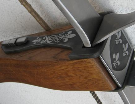 Den etwas plumpen Stegreif habe ich jetzt durchbrochen.Das Stilelement Lilie ist auf der Armbrust durchgehend