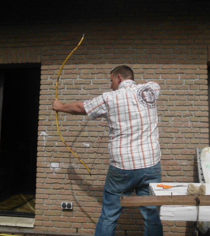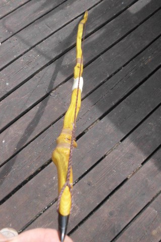 Der Bogen wurde mit Hartöl versiegelt , bzw ich bin dabei , wenn das fertig ist kommt der Griff dran .