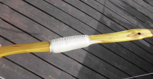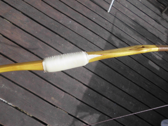 Sehne ist gebaut, Leder und arrowpass sind dran .
