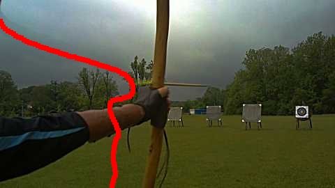 Ich habe den Bogen 'gemutmaßt' weil ich ihn nicht sehen kann, und die Sehne 'logisch' fortgeführt.