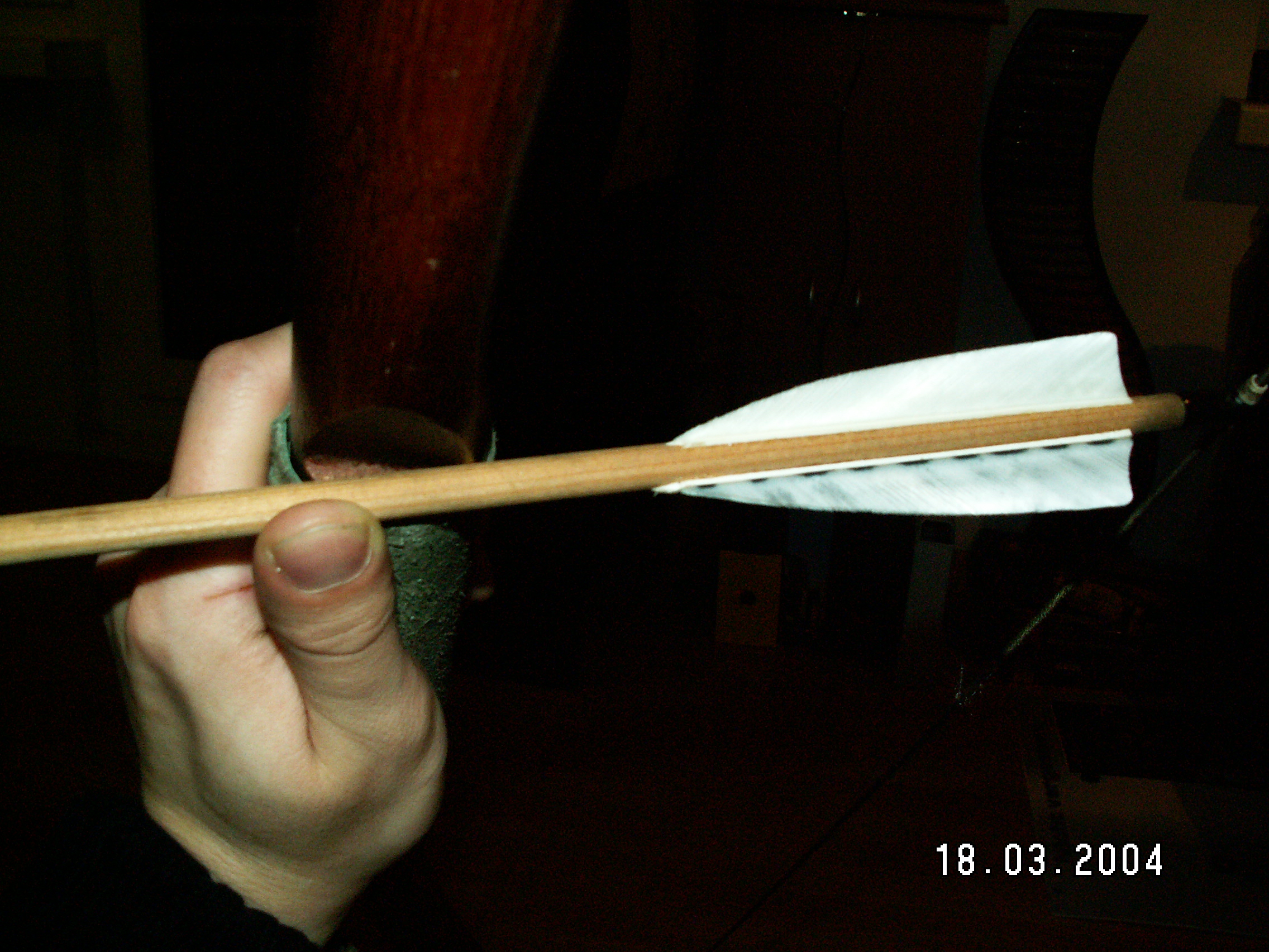 Wie im Anhang ersichtlich (sein dürfte) taugt die Auflage nicht viel, da es an Auflagefläche für den Pfeil mangelt. Deshalb schieß ich über den Handrücken. Den Nockpunkt hatte ich mir damals in meinem ersten Bogensportverein von einem scheinbar erfahrenen Schützen justieren lassen (wobei an zu merken sei, dass ich der einzige Langbogenschütze war). Da der Verein dann doch zu weit weg war, hab ich es aufgegeben und erst vor kurzem (nach einem Umzug) in einem anderen Verein wieder angefangen. Dort gibt es auch ein paar Langbogenschützen. Morgen ist wieder Training und ich werd mal schauen, ob sich wer findet, der da mal drüber schaut.